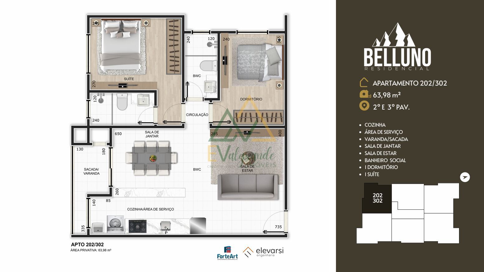 Apartamentos 202 - 63,98m² - R$ 418.000,00